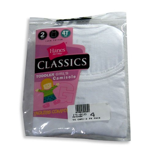Hanes - Toddler Girls 2 Pack Camis, White, Tank Style, Tagless, Preshrunk, Great For Layering, Size 2T/3T = 20-27lbs 21\"Chest 4T = 28-38lbs 23\"Chest, 100% Cotton, #19016
